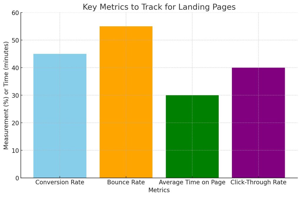 After your landing page is live, track key metrics to determine its performance. Some of the key metrics you should look out for are conversion rate; bounce rate, average time on page and click-through rate. These numbers will show you how effective your landing page is. And maybe an indicator of areas that might need to change on it.